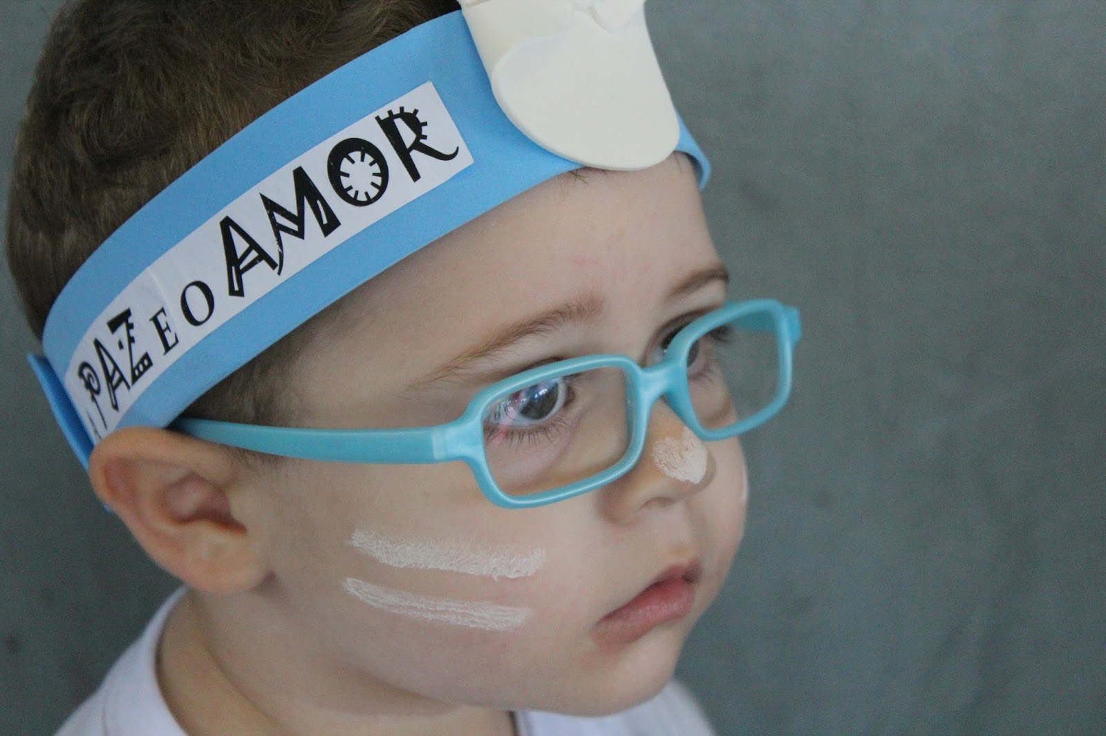 Utilizamos o desenho de nossa mão para construir um lindo adereço representando a paz e o amor, pois
