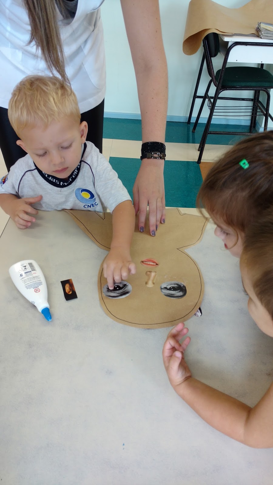E juntos procuramos em revistas as características que faltavam para completar o esquema corporal do nosso "boneco especial", nome escolhido pelas crianças.